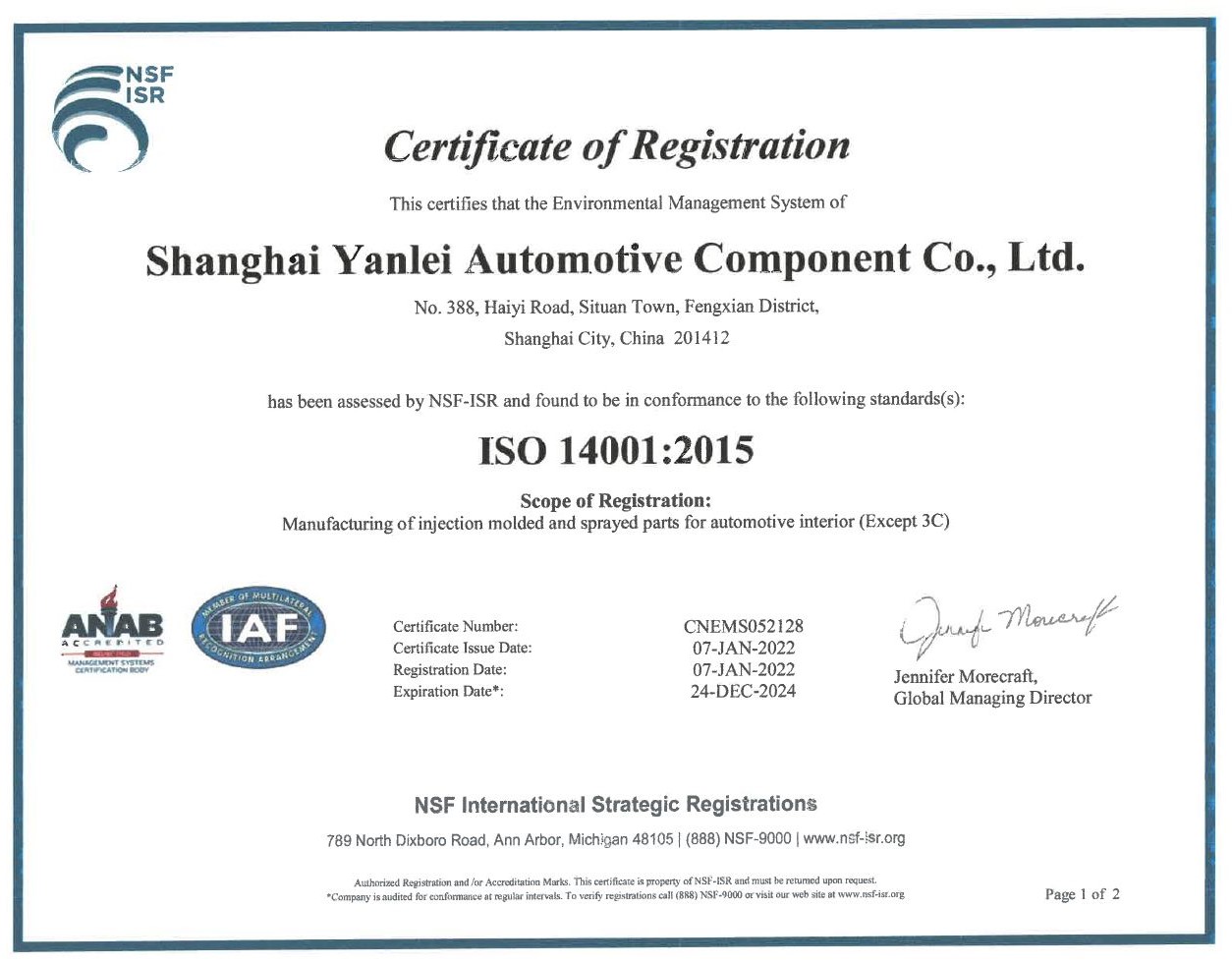 2018年12月份獲得了環(huán)境ISO 14001認(rèn)證證書